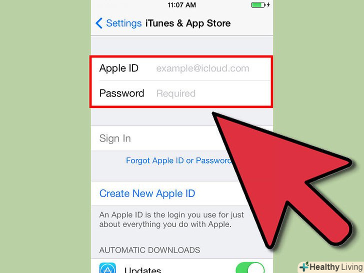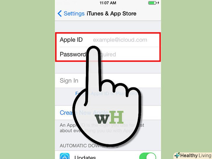 Введіть Ваш Apple ID і пароль.- Якщо у вас немає Apple ID, натисніть на " Create Apple ID."Тоді iTunes Store перенаправить вас на процес авторизації і створення Apple ID.