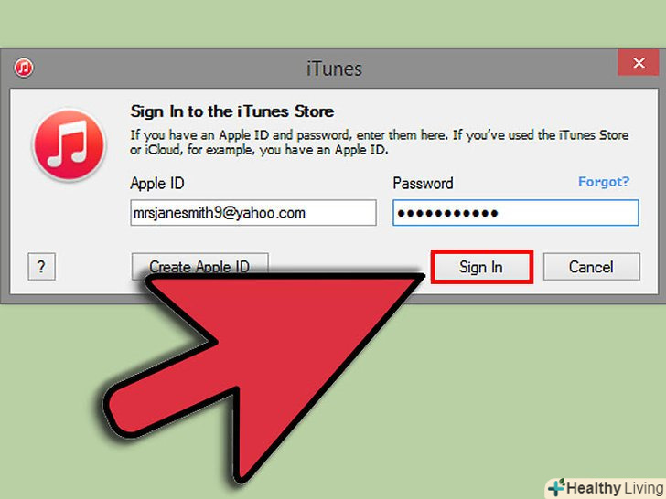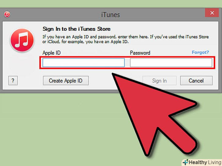 Введіть Ваш Apple ID і пароль.- Натисніть на "Create Apple ID", якщо у вас немає існуючого Apple ID. iTunes перенаправить вас на процес створення нового Apple ID.