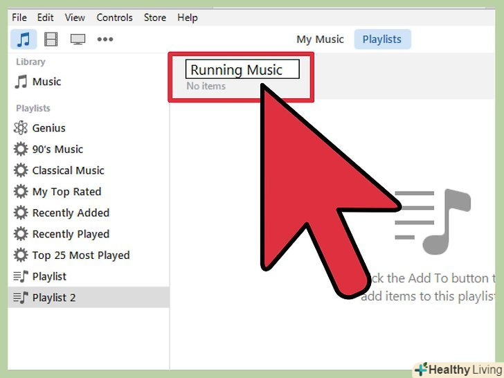 Додайте музичні композиції до списку відтворення. клацніть по "Музика" gt;»Плейлист". Клацніть по потрібному списку відтворення, а потім клацніть по Додати. Тепер перетягніть потрібні аудіофайли в плейлист на бічній панелі.