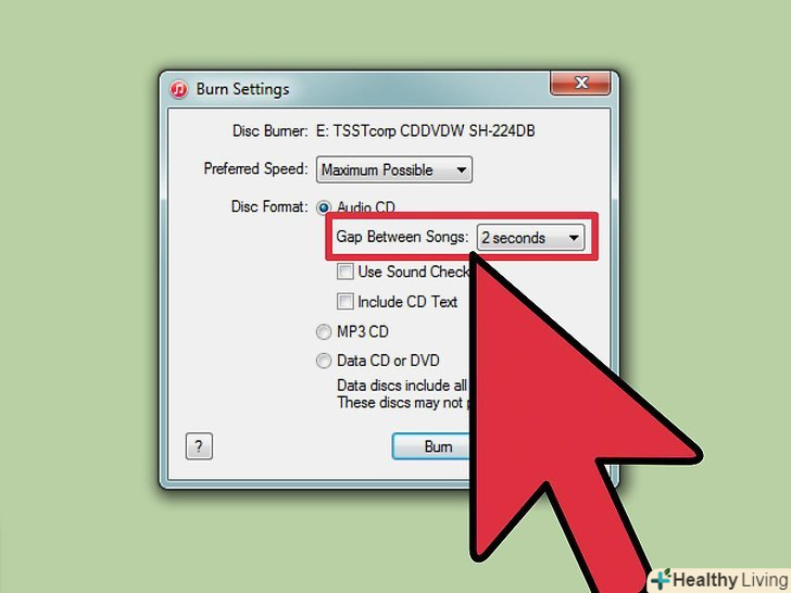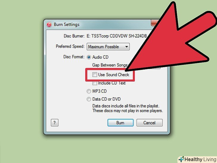 Вкажіть, чи слід використовувати перевірку звуку.ця функція дозволить записати всі пісні з однаковою гучністю. Приберіть прапорець у «включити перевірку звуку", щоб кожна композиція відтворювалася на вихідній гучності.