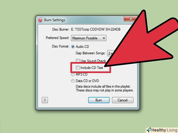 Вкажіть, чи використовувати функцію CD Text.встановіть прапорець біля опції "Включити CD Text", щоб під час відтворення відображалася інформація про пісню.