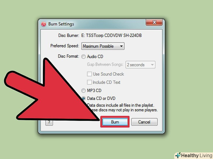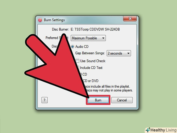 Клацніть по < span class="nowrap" title="This is not a clickable button; it illustrates the button one should find." style="font-family: Segoe UI, Frutiger, Frutiger Linotype, Dejavu Sans, Helvetica Neue, Arial, sans-serif;letter-spacing:0px;padding:0em .6em; border:1px solid; border-color:#AAA #555 #555 #AAA; -moz-border-radius: 0px; -webkit-border-radius: 0px; border-radius: 0px; background-color: #F2F2F2; background-image: -moz-linear-gradient(top, #FCFCFC, #E0E0E0); background-image: -o-linear-gradient(top, #FCFCFC, #E0E0E0); background-image: - webkit-linear-gradient(top, # FCFCFC, #E0E0E0); background-image: linear-gradient(top, #FCFCFC, #E0E0E0);">записати.на запис диска піде кілька хвилин. Якщо ви скасуєте запис на диск CD-R, його можна буде викинути.- Якщо розмір пісень перевищує розмір диска, iTunes запропонує вам вставити інший компакт-диск.[2]