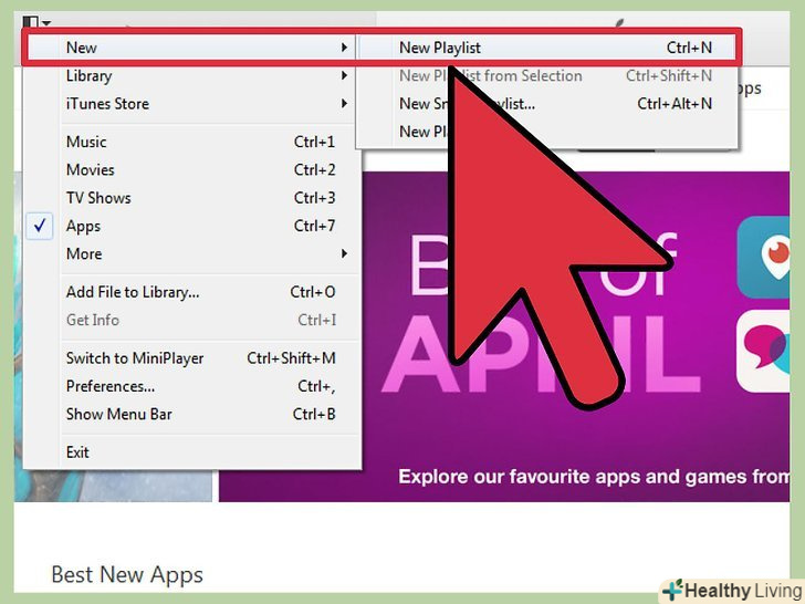 Створіть новий список відтворення. клацніть по "Файл" gt;» створити «gt;»Плейлист".- Якщо меню «Файл» в Windows 7/8 не активне, натиснітьAlt.