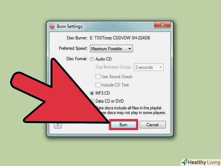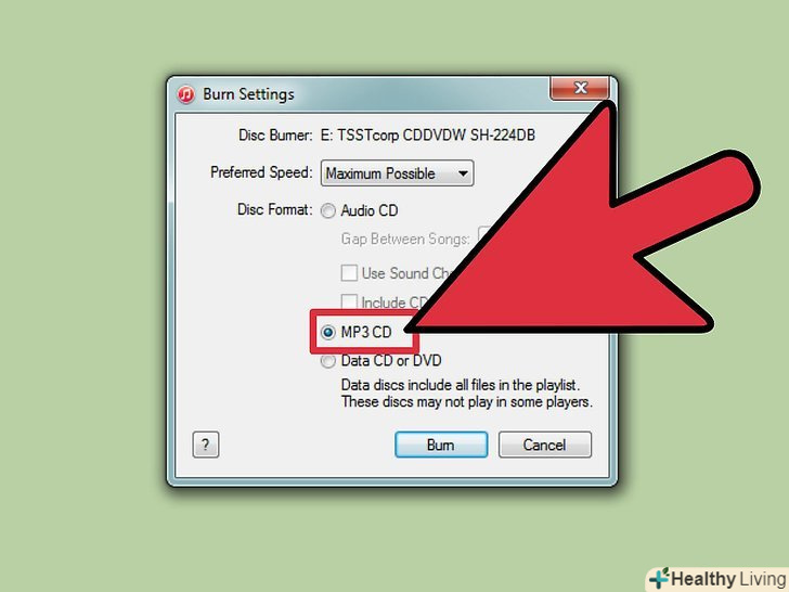 У вікні «Параметри запису» натисніть "MP3 CD".