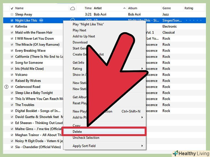 Видаліть непотрібні композиції. для цього натисніть на непотрібну пісню, щоб виділити її, а потім клацніть по Видалити.