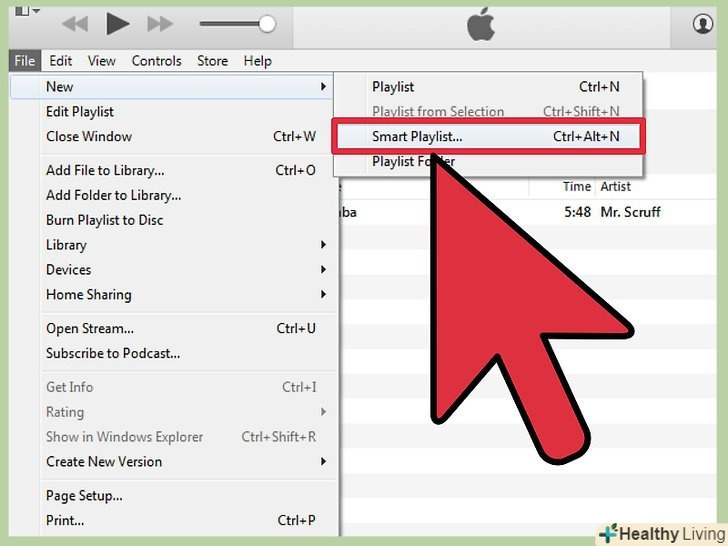 Створіть смарт-плейлист. натисніть "Файл" gt;» створити «gt;»Смарт-плейлист".- Смарт-плейлисти складаються з композицій, які підібрані, наприклад, за жанром або виконавцю. Такі плейлисти підходять для запису компакт-дисків, тому що можна вказати кількість пісень.