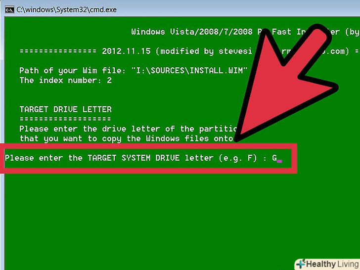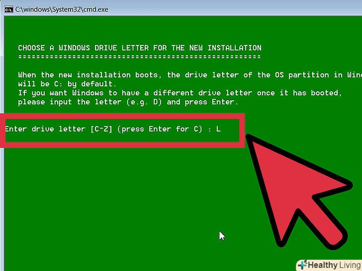 Введіть букву, яка буде позначати нову встановлювану систему Windows. Для прикладу вводимо L.