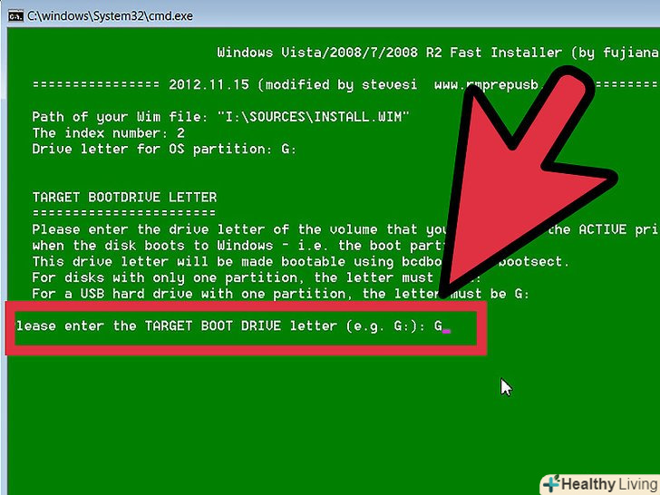 Введіть букву, що позначає флешку, на яку буде встановлена операційна система.для прикладу вводимо К.