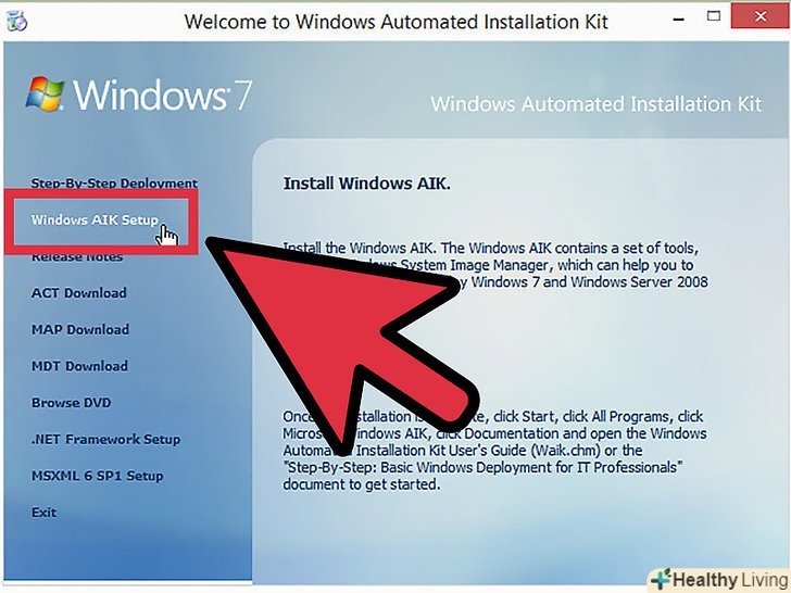 Виберіть опцію "Установка Windows AIK" (у вікні зліва).