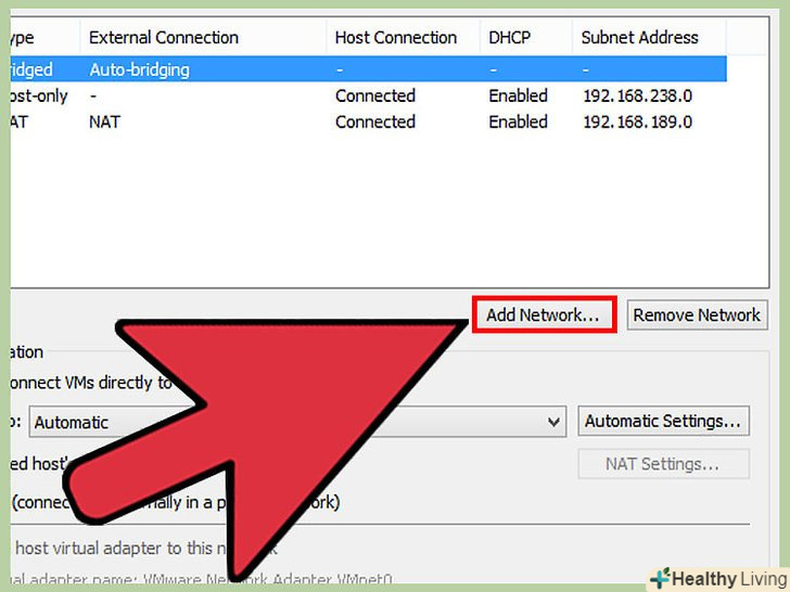 У діалоговому вікні Virtual Network Editor клікніть на Add Network (Додати мережу).
