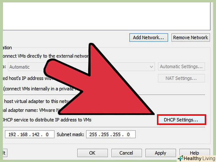 Клікніть на DHCP Setting (Налаштування DHCP) і у діалоговому вікні відзначте галочками діапазон IP-адрес для мереж VMnet2 і VMnet3.