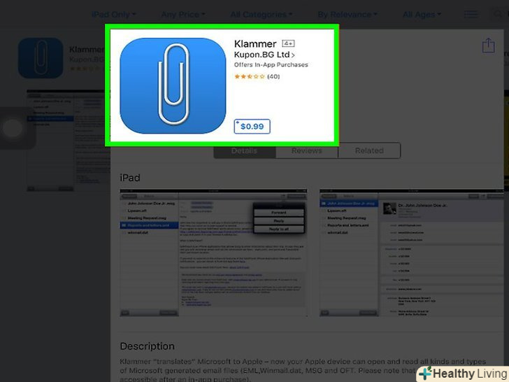 Завантажте та встановіть програму Klammer.ця програма доступна в App Store і коштує всього 99 центів. У ньому ви зможете відкрити і переглянути вміст EML-файлу. В даний час це єдиний спосіб перегляду EML-файлів в iPad (без необхідності їх конвертування).[5]