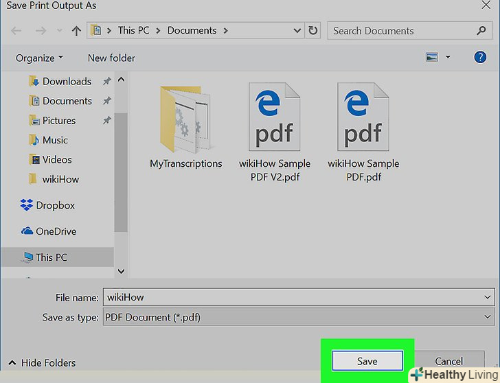 НатиснітьЗберегти у форматі PDF.ця опція знаходиться в випадаючому меню. Відкриється вікно "Зберегти".