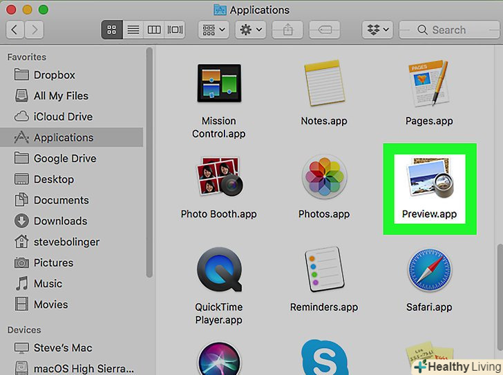 Відкрийте програму "перегляд". натисніть на значок у вигляді лупи над декількома фотографіями; він знаходиться в доці. Відкриється вікно Finder.- Якщо цього значка в доці ні, введітьперегляд у Spotlight , а потім двічі клацніть по «Перегляд» в результатах пошуку.