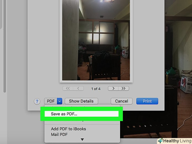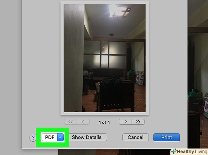 Відкрийте менюPDF.воно знаходиться в нижньому лівому кутку вікна.- Якщо потрібно змінити параметри друку (наприклад, орієнтацію фотографій), натисніть «Показати деталі» в нижній частині вікна.