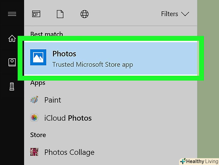 Запустіть "фотографії".натисніть на значок у вигляді двох гірських вершин на кольоровому тлі в меню "Пуск".- Якщо ви не бачите цього значка, введітьфотографії в текстовому полі в нижній частині меню «Пуск», а потім натисніть «фотографії» у верхній частині меню.
