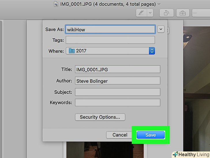 НатиснітьЗберегти.ця опція знаходиться в нижньому правому куті вікна. Фотографії будуть додані в PDF-файл, який буде збережений у зазначеній папці.