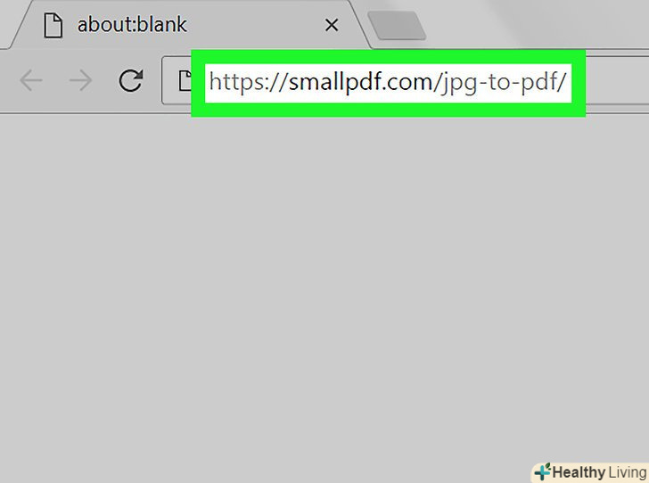 Відкрийте сайт онлайн-конвертера SmallPDF. перейдіть на сторінку https://smallpdf.com/ru/jpg-to-pdf в браузері комп'ютера.