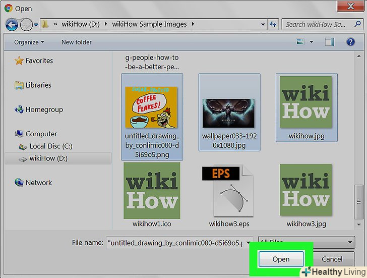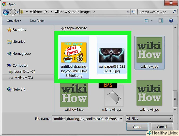 Виберіть файли JPG. Перейдіть в папку з файлами JPG, а потім утримуйте Ctrl (Windows) або ⌘ Command (Mac) і клацніть по кожному потрібному файлу.