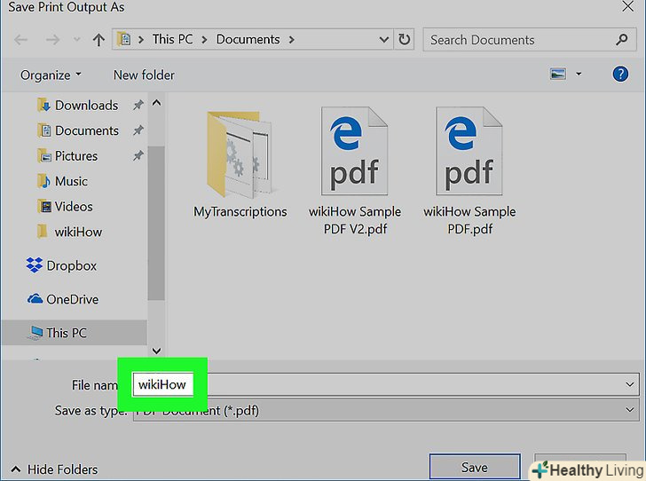 Введіть ІМ'Я PDF-файлу.зробіть це в текстовому полі "Ім'я файлу" в нижній частині вікна.