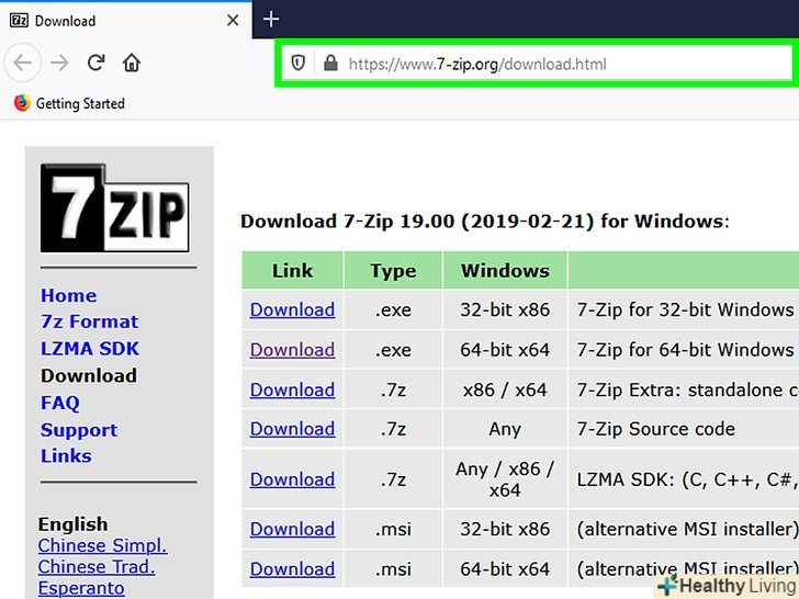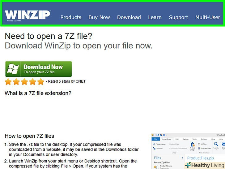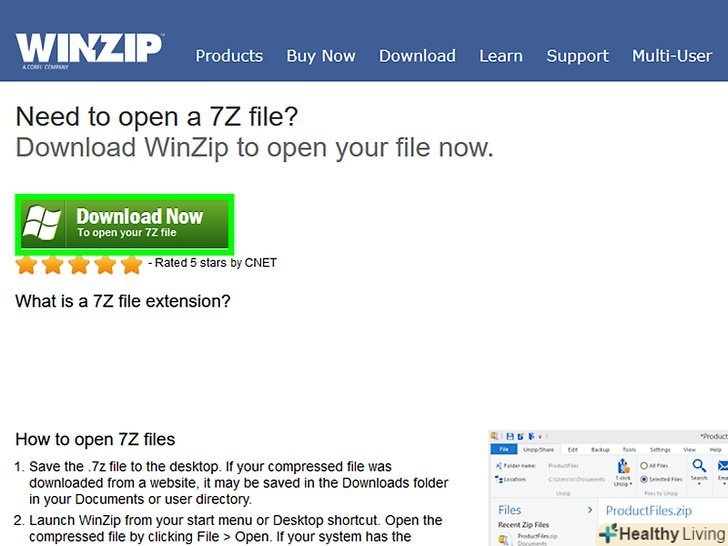 Зайдіть наСайт 7-Zip.оскільки файли 7z є стислими архівами, їх вміст не можна побачити, поки файли не будуть витягнуті програмою-архіватором. За допомогою програми 7-Zip користувачі Windows можуть витягти вміст архіву абсолютно безкоштовно.- WinZip-це ще одна популярна програма, у якої є безкоштовна пробна версія. Якщо 7-Zip вам не підходить, спробуйте встановити WinZip.
