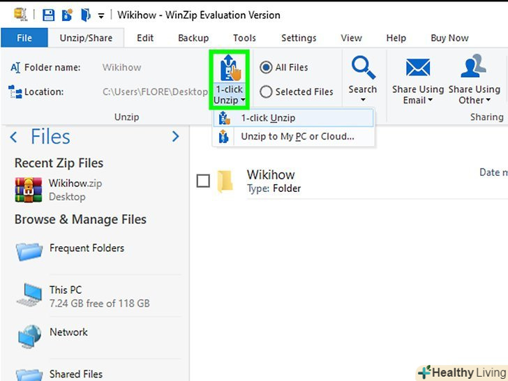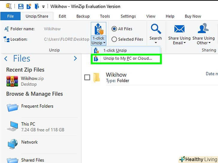 Двічі клацніть по файлу 7z. Файл 7z-це архів, що містить один або кілька файлів, стиснутих до меншого розміру. Щоб отримати до них доступ, їх спочатку необхідно витягти. У деяких користувачів Windows вже може бути встановлена програма WinZip, яка здатна розархівувати файли 7z.- Якщо подвійне натискання на файл 7z не відкриє архів, перейдіть до наступних кроків, щоб завантажити пробну версію WinZip.