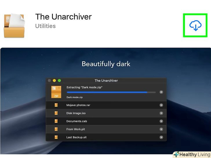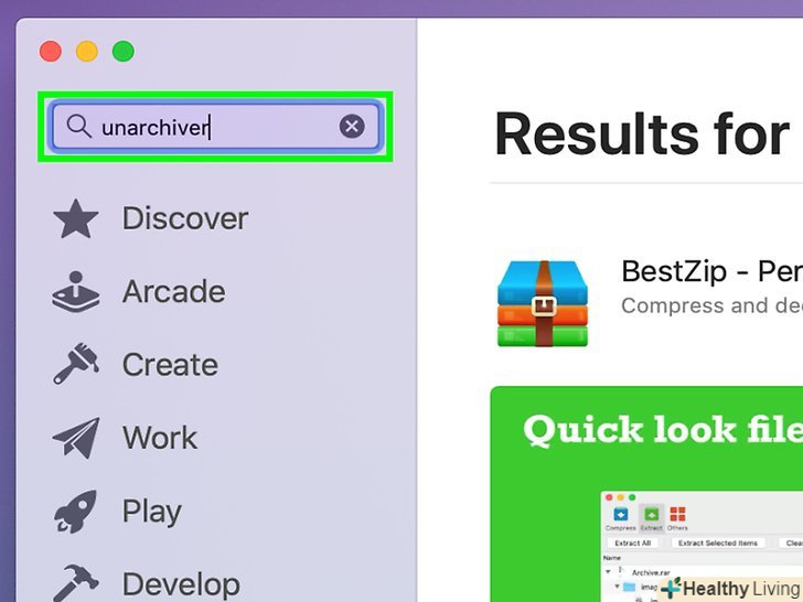 Введіть "Unarchiver" в пошукове поле верху App Store, а потім виберіть програму, коли та з'явиться в результатах пошуку.[6]