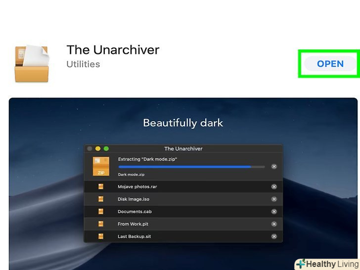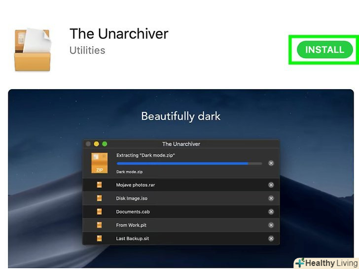 Дотримуйтесь вказівок на екрані, щоб встановити "Unarchiver" на комп'ютер.