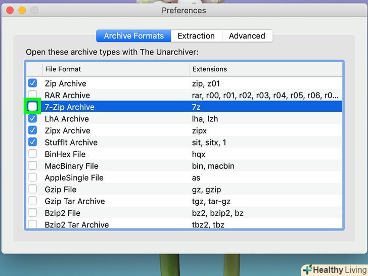 Виберіть "7-Zip archive" зі списку " File Formats "(Формат файлів).[7] так ви повідомите програмі, щоб в майбутньому вона розпізнавала і відкривала файли з розширенням .7z.