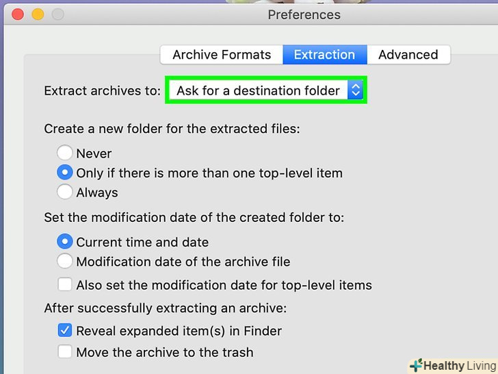 Виберіть зі спадного меню " Ask for a destination folder "(вказати папку призначення).ця опція дозволить вам вибрати місце, куди файли будуть вилучені.