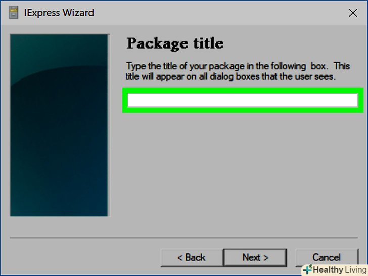 Введіть ІМ'Я свого EXE-файлу.зробіть це в текстовому полі посередині вікна, а потім натисніть "Далі".