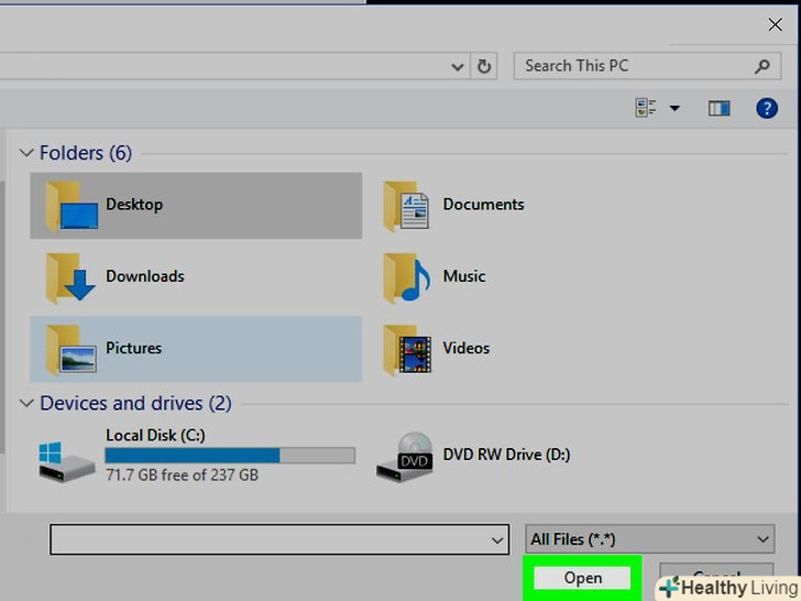 НатиснітьВідкрити.ця кнопка знаходиться в нижньому правому куті вікна. Так файли будуть додані в інсталяційний EXE-файл.- Якщо потрібно додати більше файлів, ще раз натисніть " Add "(додати) і повторіть описаний процес.