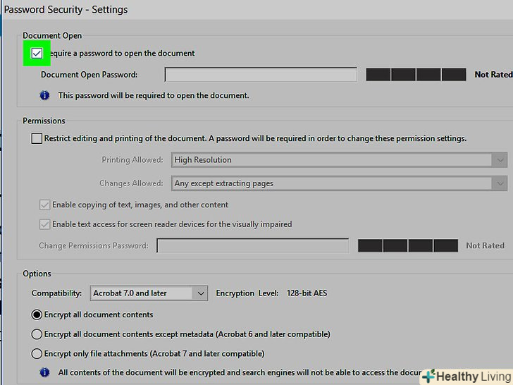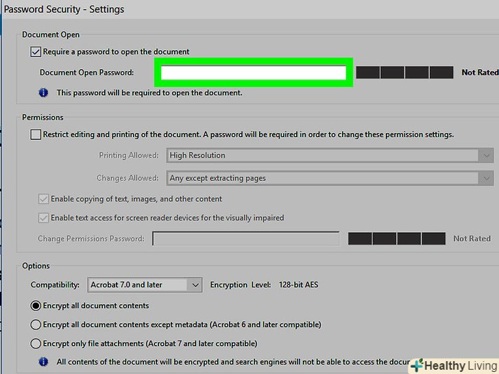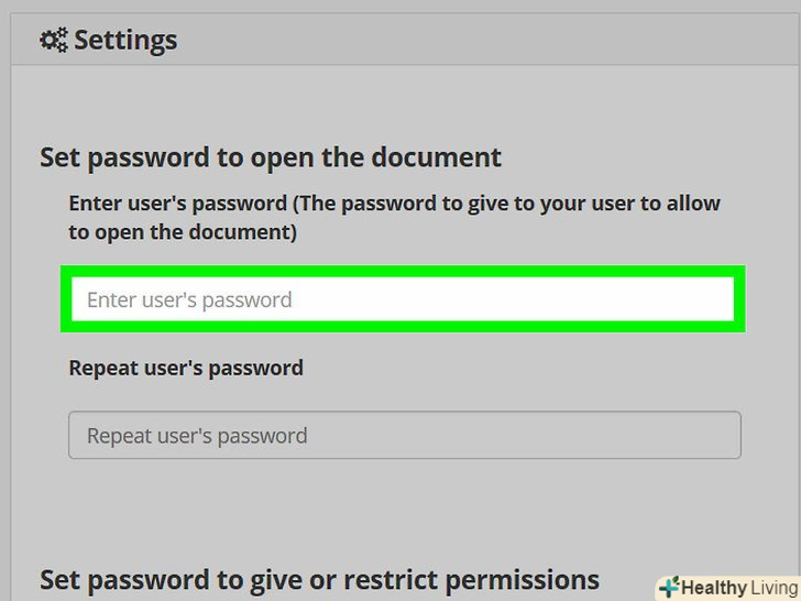 Прокрутіть вниз і введіть пароль, щоб заборонити редагувати документ.зробіть це двічі в рядках "введіть пароль власника «і» Повторно введіть пароль власника" в нижній частині сторінки.