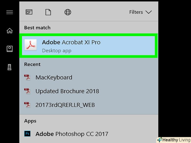 Відкрийте PDF-файл в Adobe Acrobat. натисніть "Файл «(у верхньому лівому куті) gt;» Відкрити «(у випадаючому меню), виберіть документ, а потім натисніть» Відкрити" (у нижній правій частині екрана).