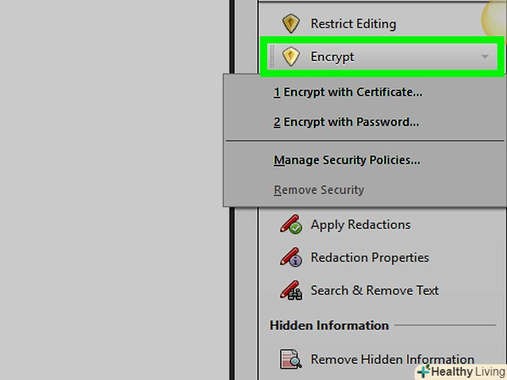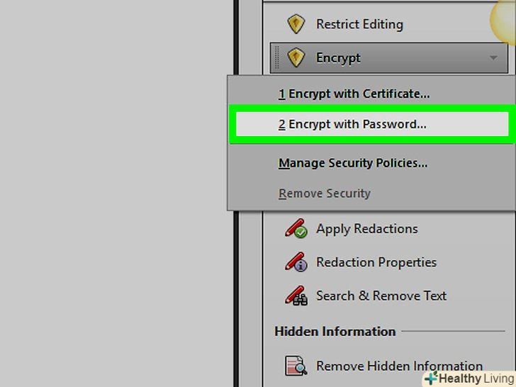 Переконайтеся, що на комп'ютері встановлена платна версія Adobe Acrobat.у безкоштовній версії цієї програми Встановити пароль на документ не можна.