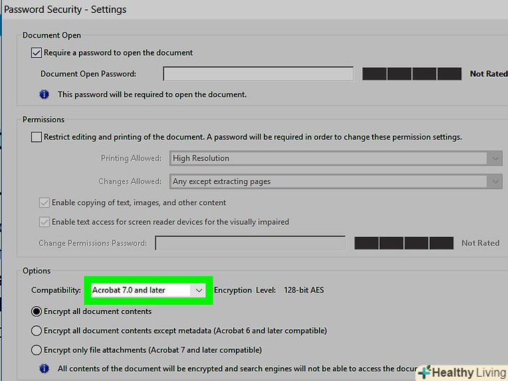 Виберіть рівень сумісності.відкрийте меню «Сумісність", а потім виберіть версію Adobe Acrobat, з якою документ буде сумісним.