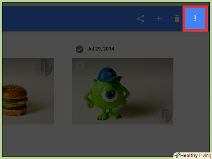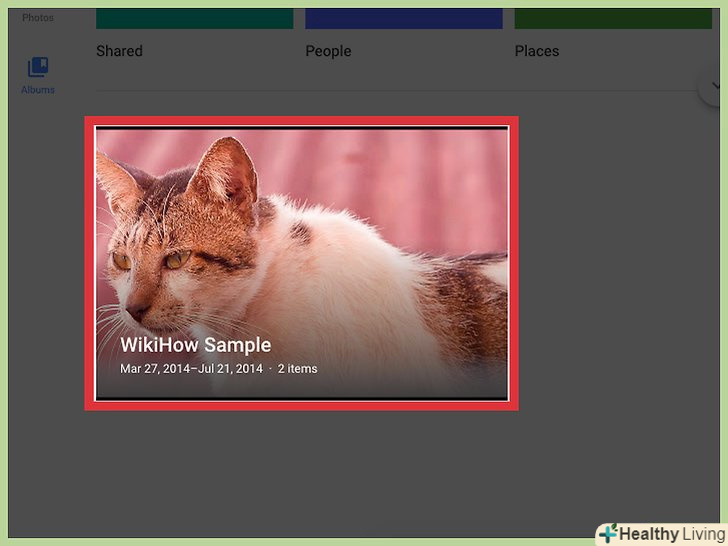 - Щоб поділитися альбомом з іншими користувачами, відкрийте альбом і натисніть іконку "поділитися" (символ lt; з трьома точками). Поділіться альбомом в повідомленні, соціальної мережі, по електронній пошті або іншим способом.