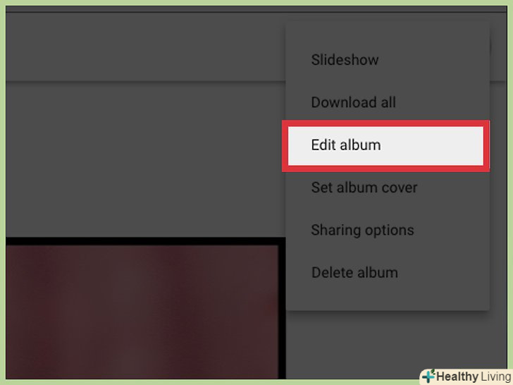 Виберіть "Редагувати альбом". Тепер даний альбом знаходиться в режимі редагування і це помітно по відповідним символам в правому верхньому куті екрану. Також на екрані будуть видні невеликі символи " X " в лівому верхньому кутку кожної фотографії.