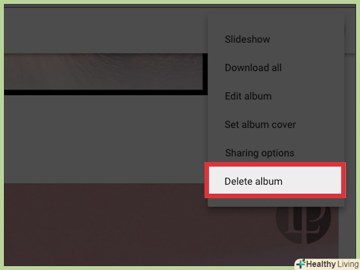 Виберіть "Видалити альбом". З'явиться спливаюче вікно підтвердження з нагадуванням про те, що відновити видалений альбом неможливо. Пам'ятайте: фото всередині цього альбому залишаться в бібліотеці і не будуть видалені.
