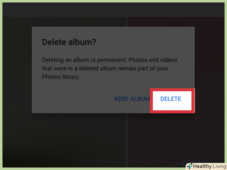 Натисніть "Видалити".альбом буде видалено зі списку доступних альбомів.