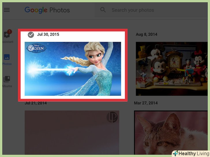 Наведіть курсор мишки на фотографію.у лівому верхньому куті знімка з'явиться гурток вибору фотографії.