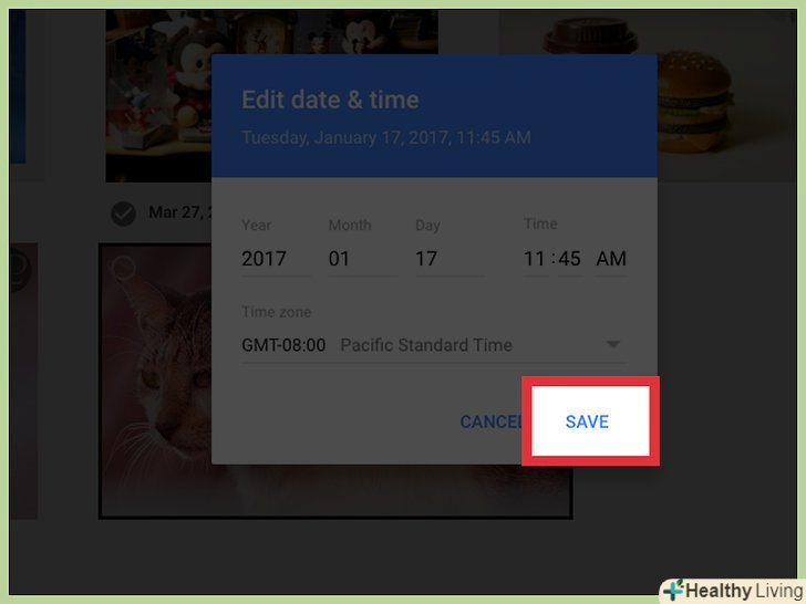 Вкажіть нову дату і час. виберіть більш пізню дату, щоб перемістити фотографію у верхню частину списку (або більш ранню дату, щоб перемістити фотографію в нижню частину списку).