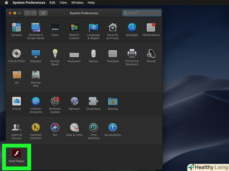 Клацніть поFlash Player.ця опція знаходиться у вікні "Системні налаштування". Відкриється вікно Flash Player.