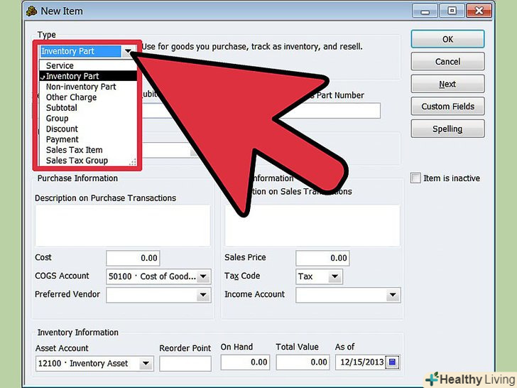 Виберіть "Inventory Part" і введіть необхідну інформацію.