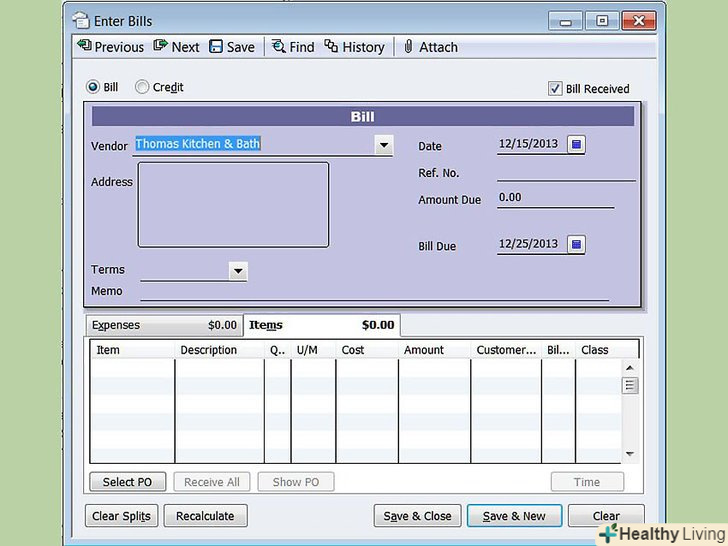 Виберіть "Receive Items", щоб відобразити список ваших речей, які були оплачені, або виберіть" Receive Items and Enter Bill " для тих, які не пройшли оплату.