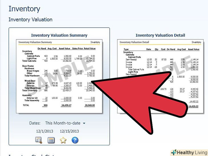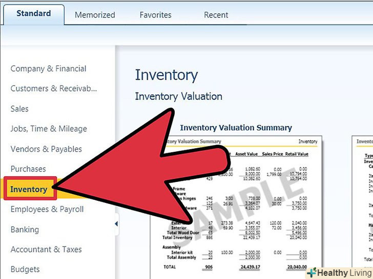 Знайдіть вкладку " Standard "і виберіть" Inventory", щоб подивитися список звітів, які можуть бути згенеровані.