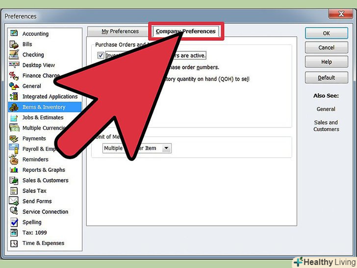 Виберіть вкладку під назвою " Company Preferences."