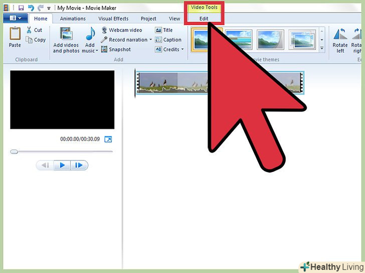 Натисніть на вкладку "Засоби для роботи з відео: правка". Знайдіть цю вкладку в дальньому правому кінці панелі навігації у верхній частині вікна: праворуч від вкладок "Головна», «Анімація», «візуальні ефекти», «Проект»і "Вид".