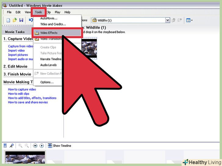 Відкрийте відеоефекти.перебуваючи на головному вікні розкадровки, натисніть «сервіс», а потім «відеоефекти».