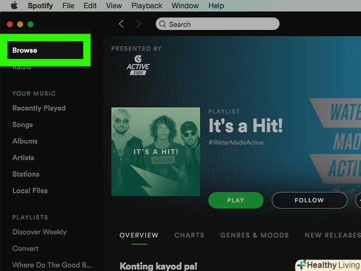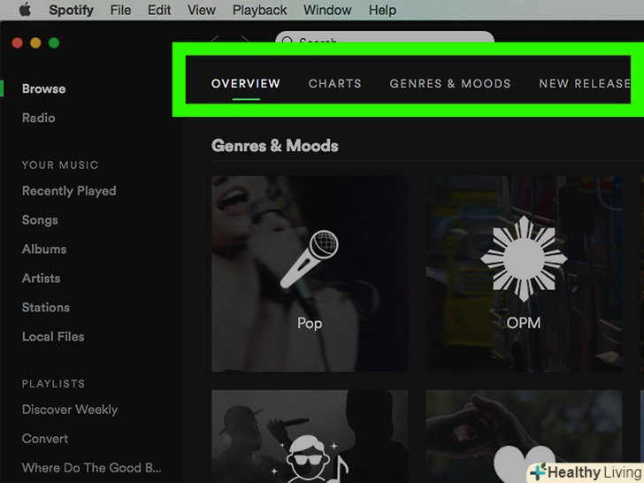 Вивчіть домашню сторінку.тут відображаються рекомендовані виконавці, популярні списки відтворення, нова музика та інші індивідуальні матеріали.- Щоб повернутися на цю сторінку, натисніть кнопкуHome(додому) на мобільному пристрої абоBrowse (огляд) на комп'ютері.
